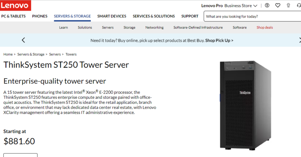 Harness enterprise-level server power with the #Lenovo ThinkSystem ST250 tower server! ? Visit this link to take a 3D tour and learn what makes this server such a powerhouse. It delivers Intel® Xeon® E-2200 processors, a wide range of storage options, and more. To order yours, contact Computer Hardware, Inc..